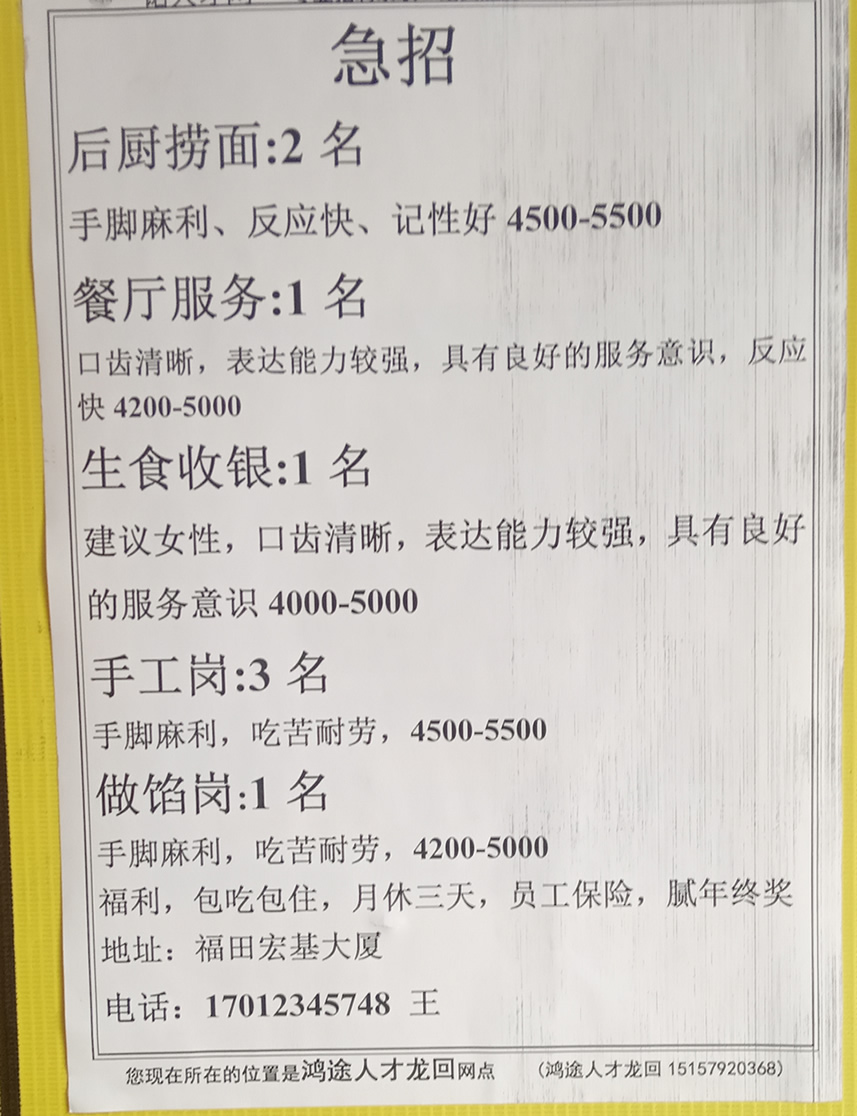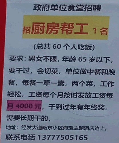 盆钵满招服务员1名,厨房2名,底薪3500+每月奖金,联系电话:18551052469地址:东兴路9号体育馆东门斜对面