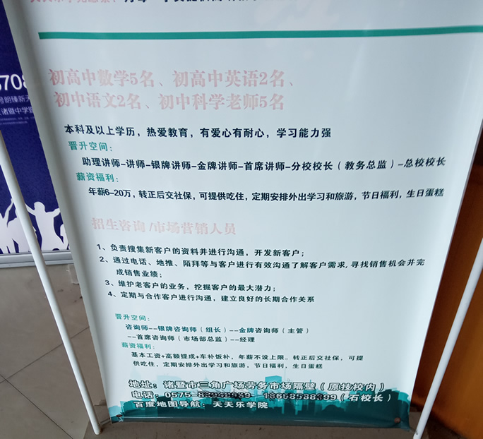 联系地址:浙江省诸暨市三角广场天天乐学院