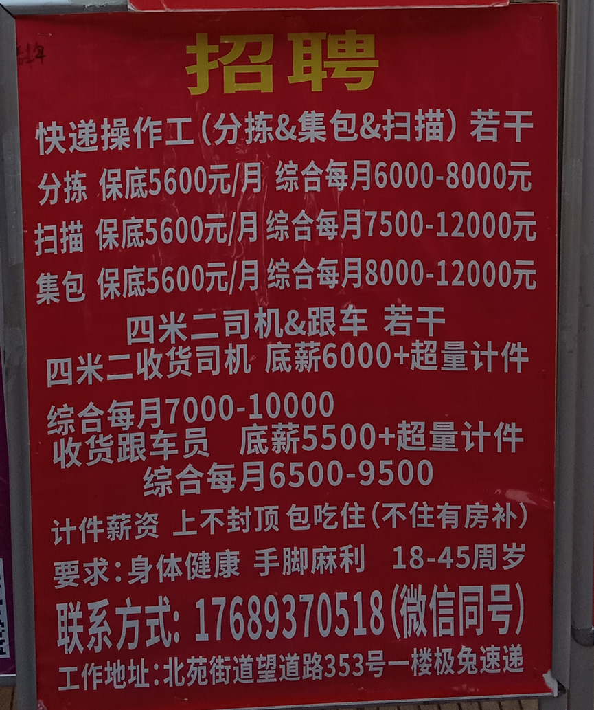 公司因业务量增大,急需工人数名,欢迎有责任心人士加入: 1)外地送货:第一个月基本工资4500元/月+补...